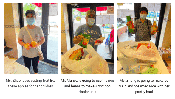 We always keep certain pantry items stocked like rice, peanut butter, cereals, and dairy products, but our pantry clients have been most excited on Wednesdays when they received fresh vegetables from Mimomex Farms, and Thursdays when donations from City Harvest came in, which also provided food donated from Trader Joe’s.