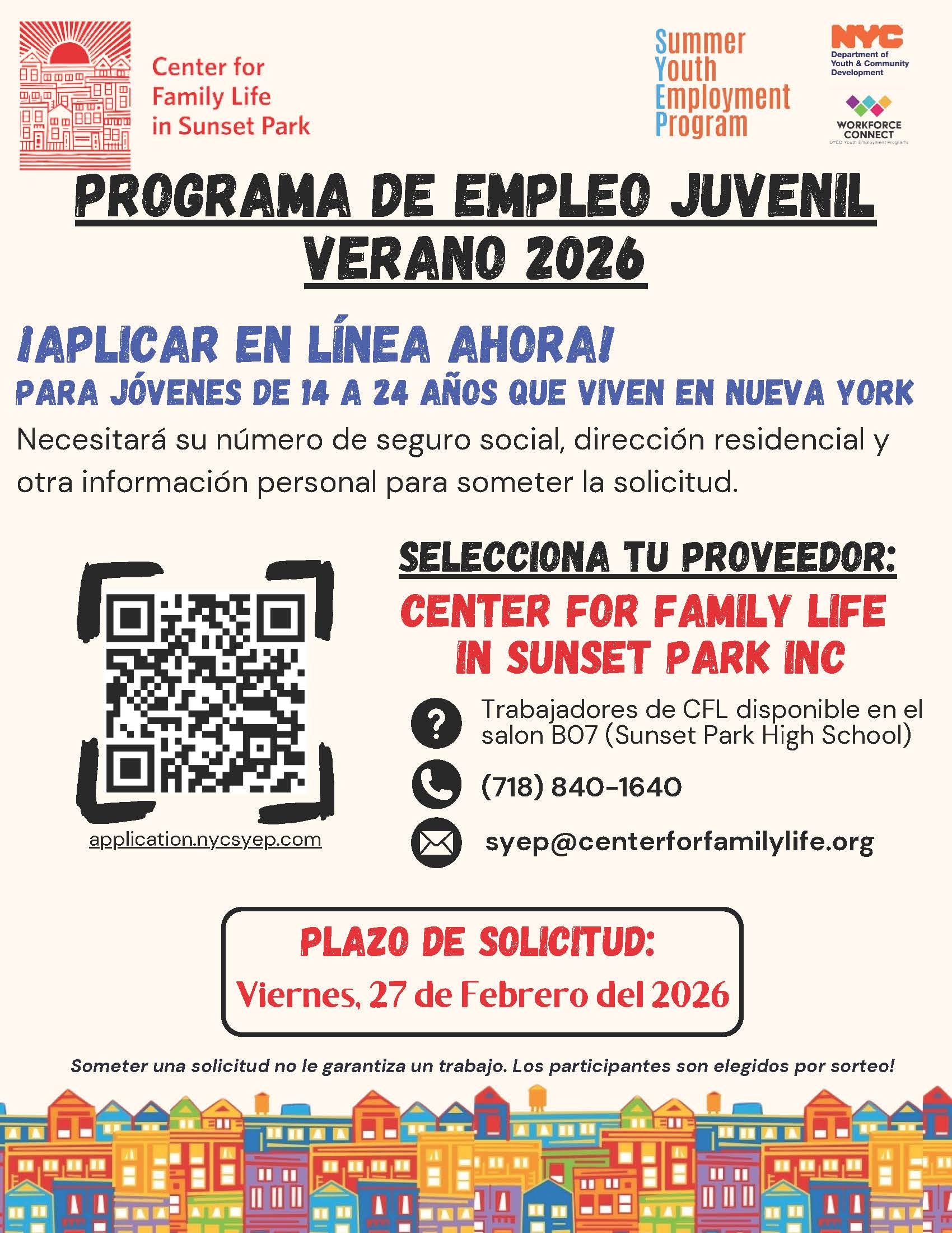 Youth can apply for SYEP online or at our Sunset Park High School program site. Applications are available in January and February, and participants are selected by lottery for the program in May and June.